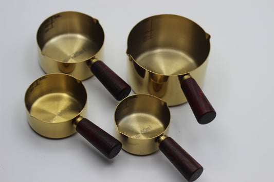 Golden Stainless Steel Measuring Set with Wooden Handle